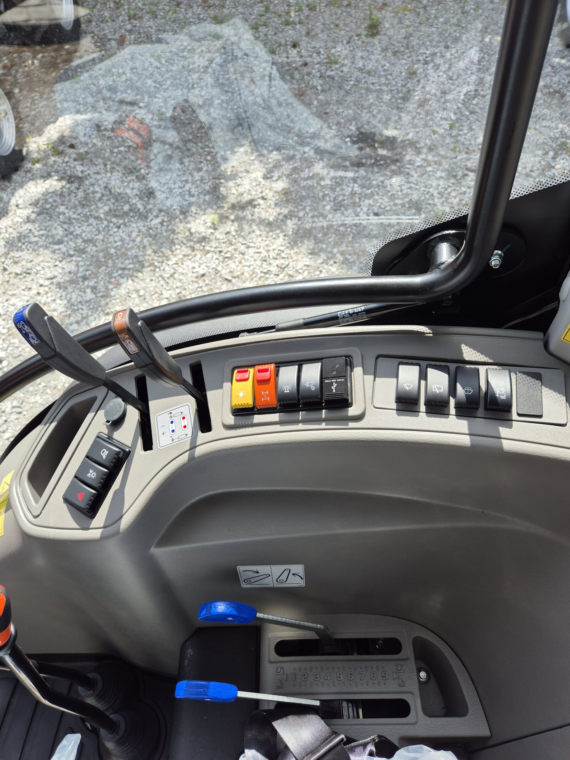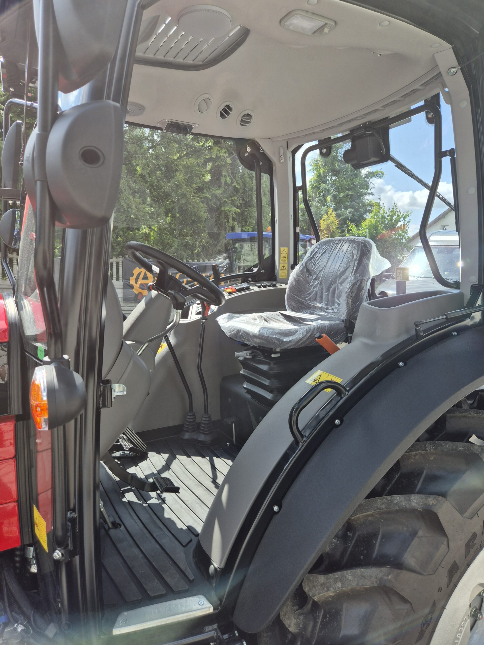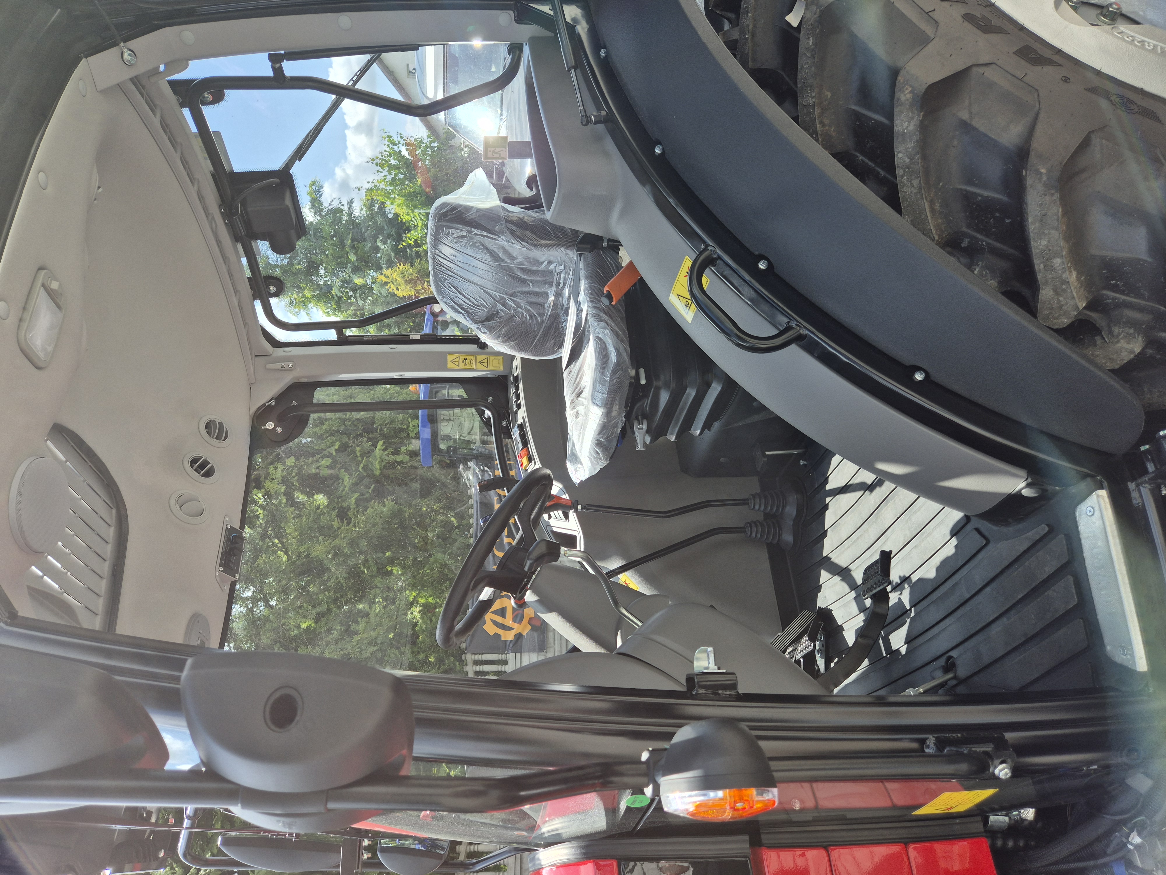 – kabina: panoramiczna, 4 słupkowa , komfortowa, z płaską podłogą, klimatyzowana, wentylowana, panel sterujący na błotniku, reg. kolumna kierownicza, reflektory robocze przód i tył, wycieraczka szyby przód, okno dachowe z szyberdachem, tylna szyba uchylna, drzwi boczne zamykane z kluczyka, lusterka zewn. 2 szt., radio z USB, lampa błyskowa, siedzenie Grammer