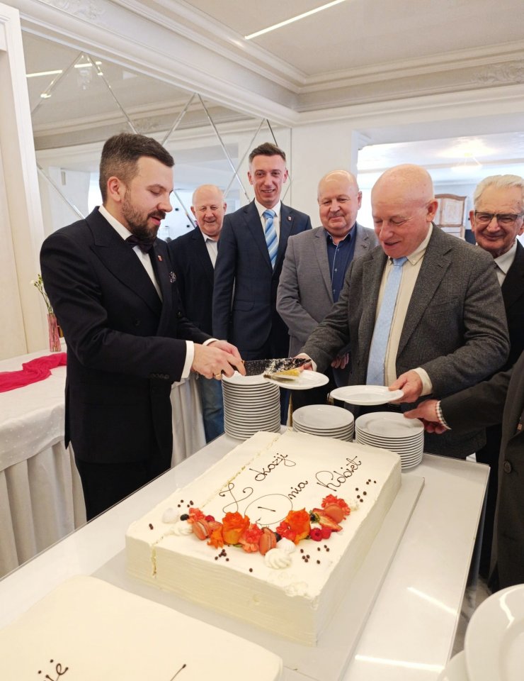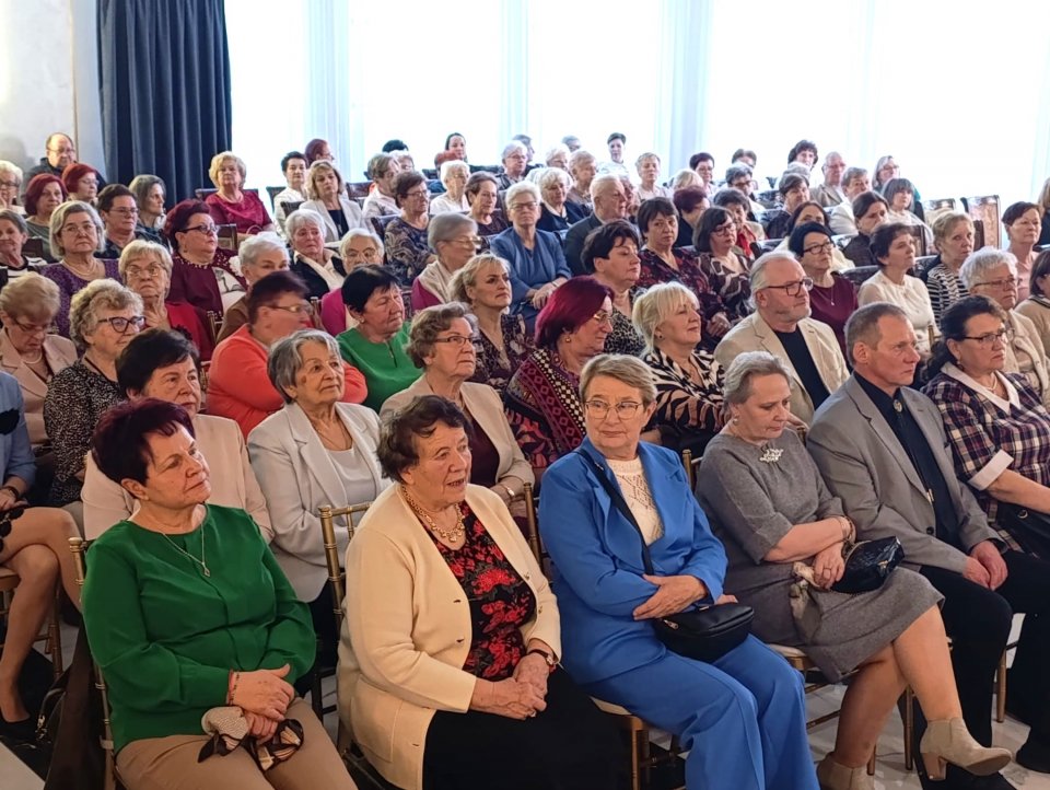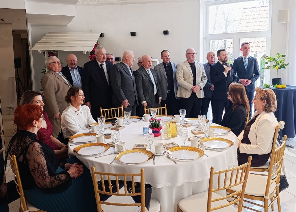 Na gości czekał pyszny tort, kolacja oraz upominki od Burmistrza, które dodatkowo podkreśliły wyjątkowy charakter święta. Uroczystość uświetnił koncert Sławomira Malinowskiego, który swoim występem wprowadził wszystkich w radosną, świąteczną atmosferę.