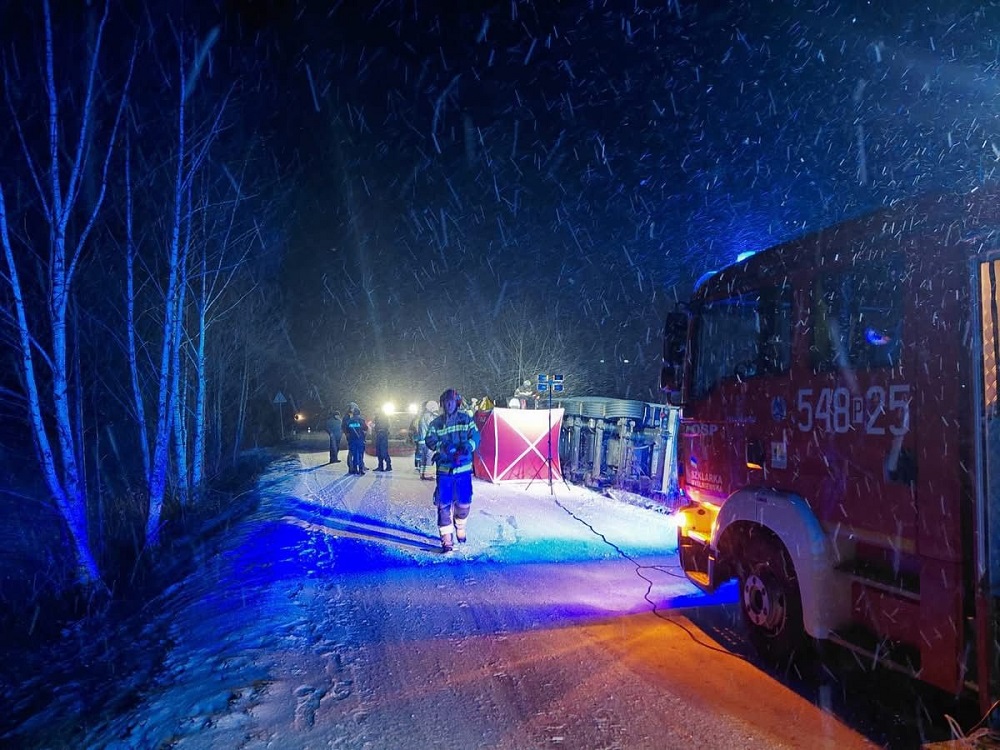 Do niebezpiecznego zdarzenia drogowego doszło we wtorek (30 grudnia) w miejscowości Szklarka Myślniewska. Około godziny 16.30 samochód ciężarowy zjechał tam do rowu i przewrócił się na bok. Kierowca wymagał pomocy medycznej.
