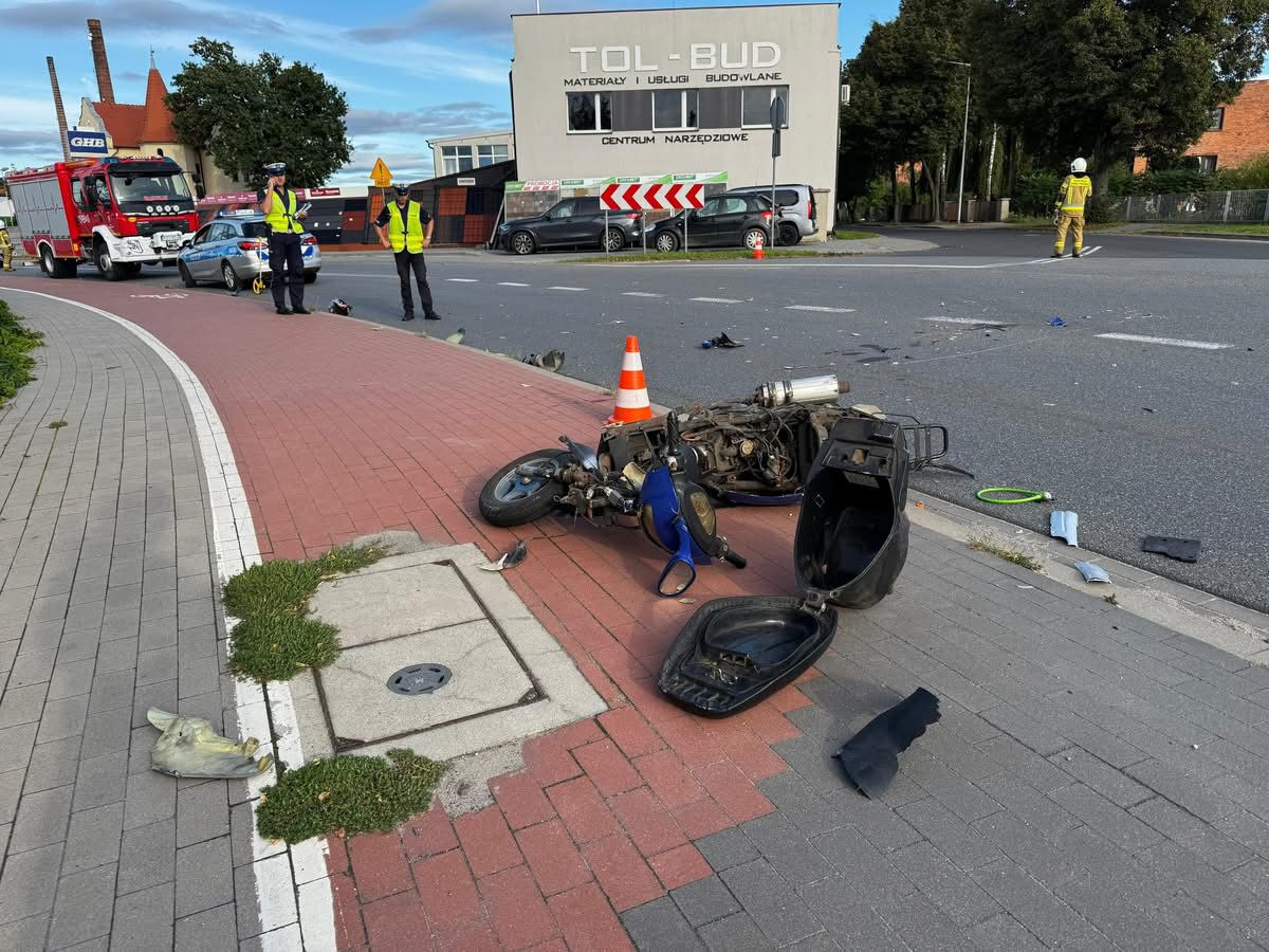 Na ulicy Tadeusza Kościuszki w Ostrzeszowie doszło do niebezpiecznego wypadku z udziałem samochodu osobowego i motoroweru. Poszkodowany 51-letni kierowca jednośladu z obrażeniami ciała trafił do szpitala w Kępnie.