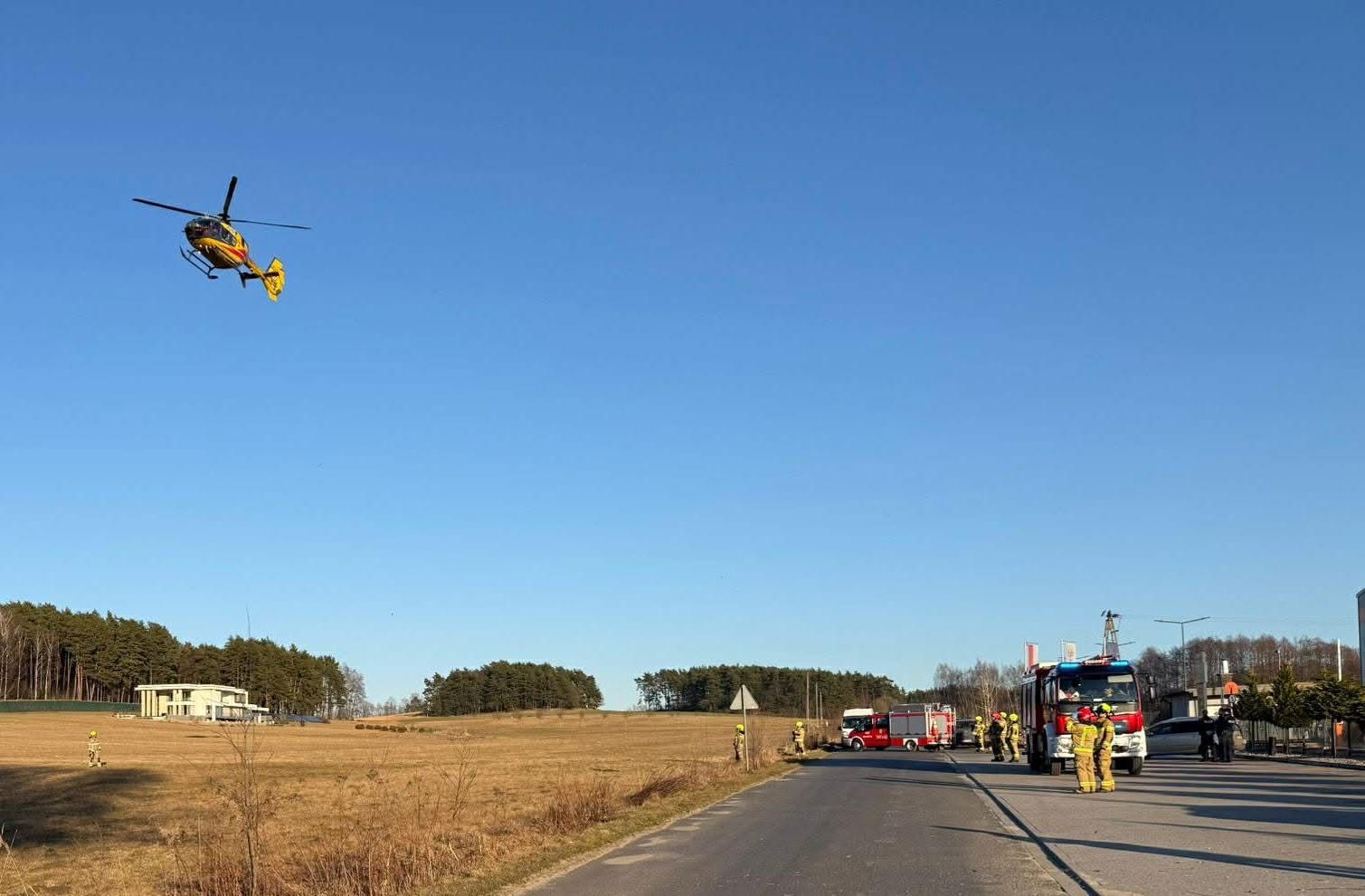 Ze względu na stan poszkodowanego do akcji wezwano również śmigłowiec Lotniczego Pogotowia Ratunkowego. Ratownicy medyczni udzielili mężczyźnie pomocy na miejscu zdarzenia, po czym został on przetransportowany śmigłowcem do szpitala.