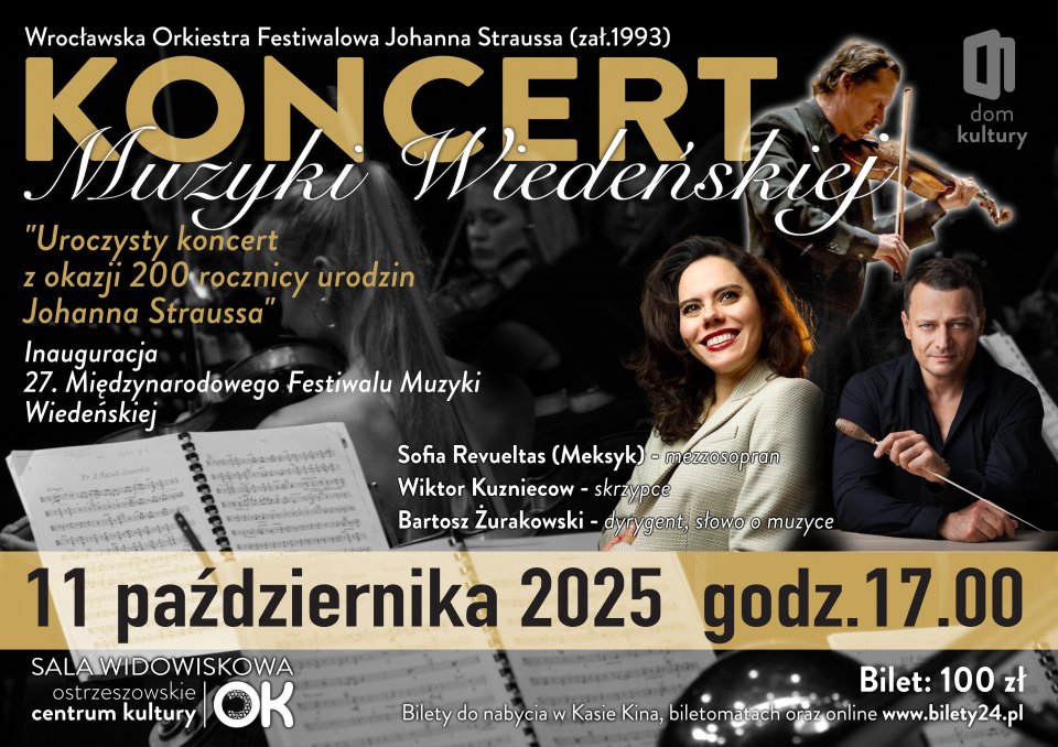 Już 11 października Ostrzeszowskie Centrum Kultury zamieni się w salę koncertową prosto z Wiednia Walce, polki i operetkowe arie mistrzów Straussa i Lehára zabiorą Was w niezapomnianą podróż!