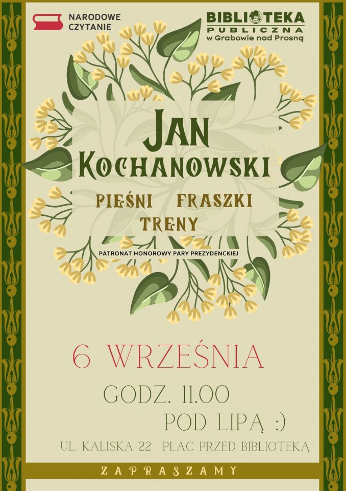 Narodowe Czytanie 2025 – “Pieśni”, “Fraszki” i “Treny” Jana Kochanowskiego [Zaproszenie]