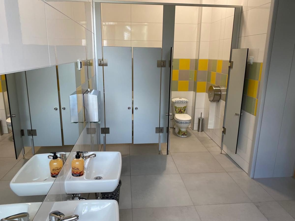 Na uczniów i uczennice czekają też nowe łazienki, które powstały w miejscu dawnych, wysłużonych pomieszczeń.