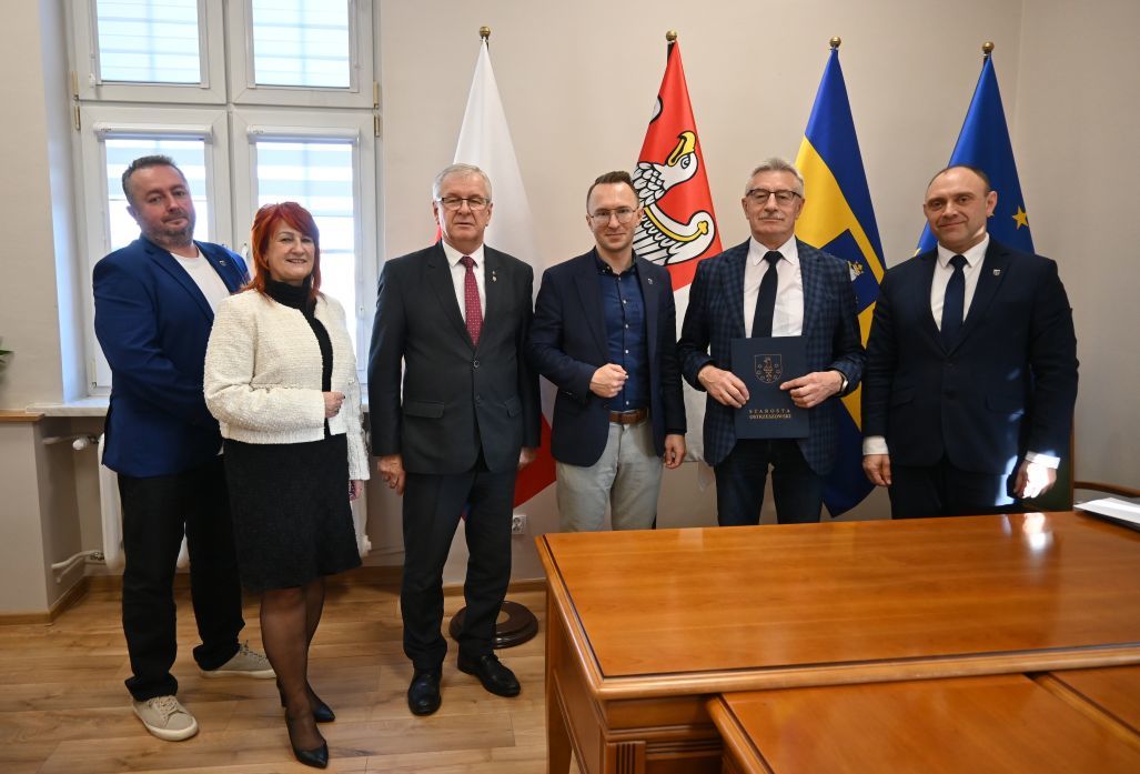 Dokument ze strony samorządu powiatowego podpisali: starosta Dariusz Świtoń, wicestarosta Lech Janicki oraz skarbnik powiatu Urszula Mikołajczyk-Machoł. PRDM reprezentowali Andrzej Krowicki i Tomasz Krowicki. W wydarzeniu uczestniczyli również burmistrz Ostrzeszowa Patryk Jędrowiak, kierownik Wydziału Zarządzania Drogami Powiatowymi Paweł Grzesiek oraz inspektor WZDP Małgorzata Domazer.