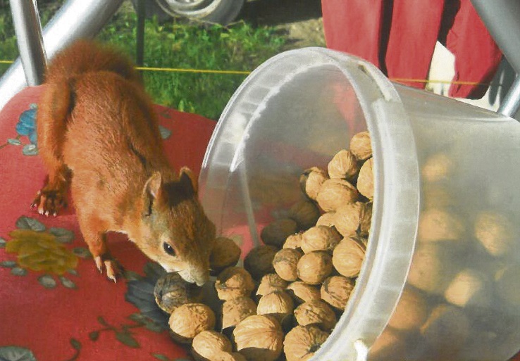 Pani Sobczak z Kobylej Góry zwraca się z serdeczną prośbą o orzechy dla wiewiórek, które regularnie odwiedzają jej ogród.