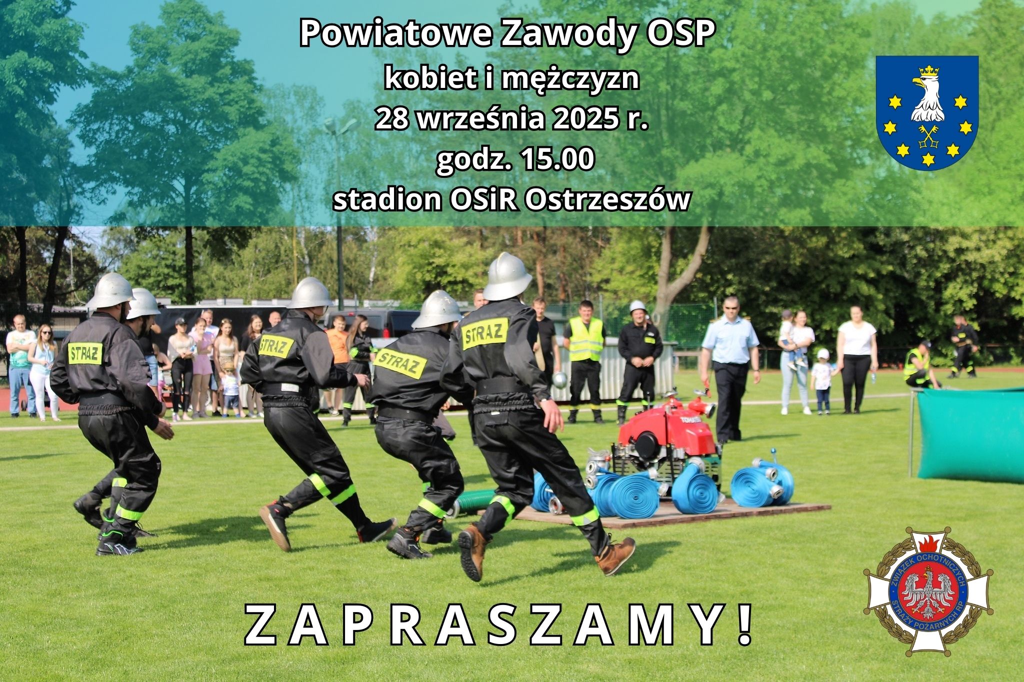12 drużyn ochotniczych straży pożarnych powiatu ostrzeszowskiego zmierzy się w Zawodach Sportowo-Pożarniczych Ochotniczych Straży Pożarnych, które odbędą się 28 września na stadionie im. Janusza Kusocińskiego w Ostrzeszowie. W zawodach wezmą udział zwycięzcy zawodów gminnych – 7 męskich drużyn pożarniczych i 5 kobiecych. Już dzisiaj serdecznie zapraszamy!
