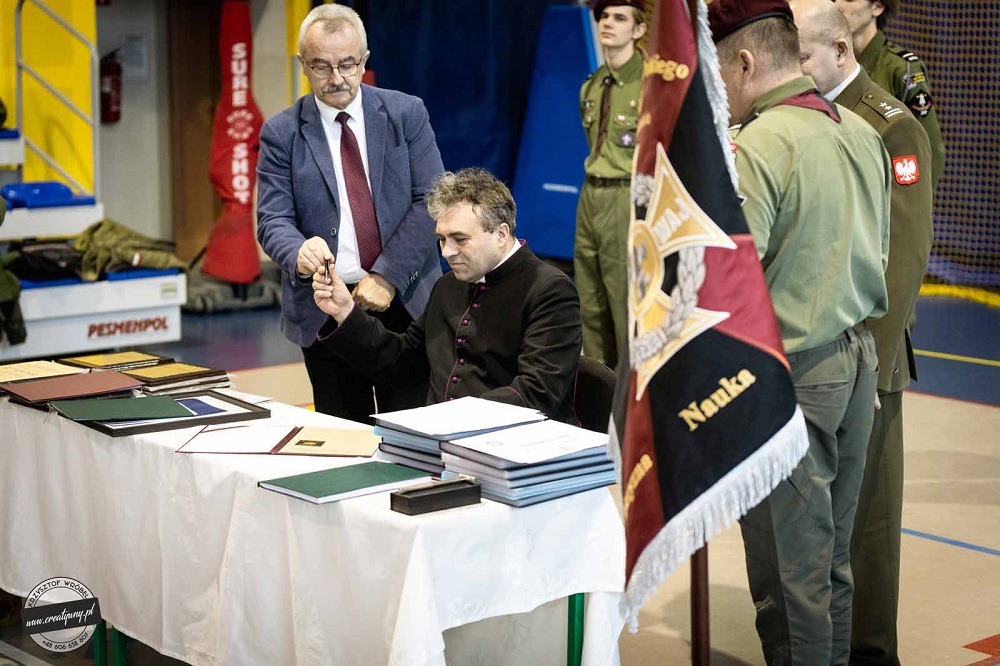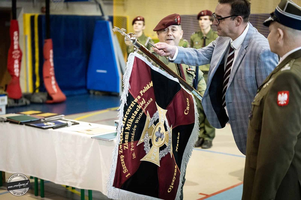Po zakończeniu mszy świętej dalsza część wydarzenia odbyła się w Szkole Podstawowej im. E. Estkowskiego w Mikstacie. Tam miała miejsce uroczystość podpisania aktów chrztu sztandaru oraz jego oficjalne przekazanie przez fundatorów na ręce harcerzy.