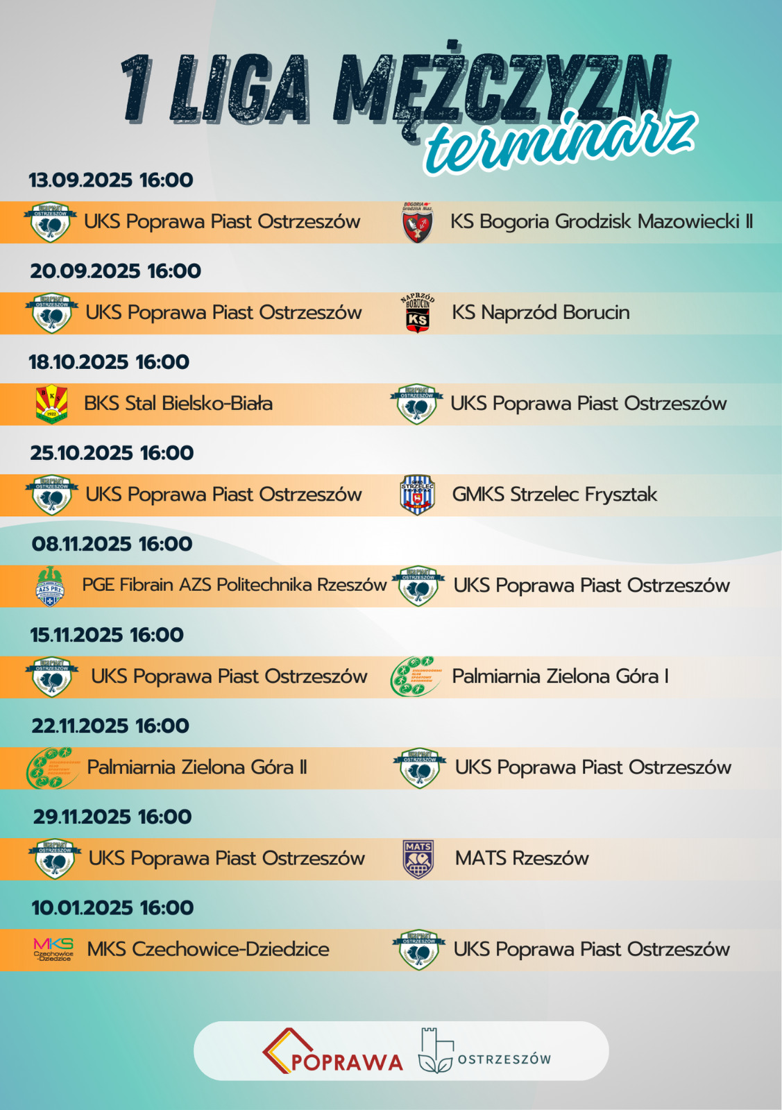 Terminarz 1. ligi tenisa stołowego z udziałem UKS Piast Poprawa