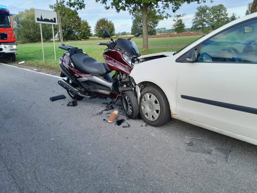 Na łuku drogi wojewódzkiej nr 450 kierujący motocyklem marki Piaggio, 71-letni mieszkaniec powiatu kępińskiego, stracił panowanie nad pojazdem. Motocykl zjechał na przeciwległy pas jezdni, gdzie doszło do czołowego zderzenia z samochodem marki Volkswagen, prowadzonym przez 37-letniego mieszkańca Grabowa nad Prosną.
