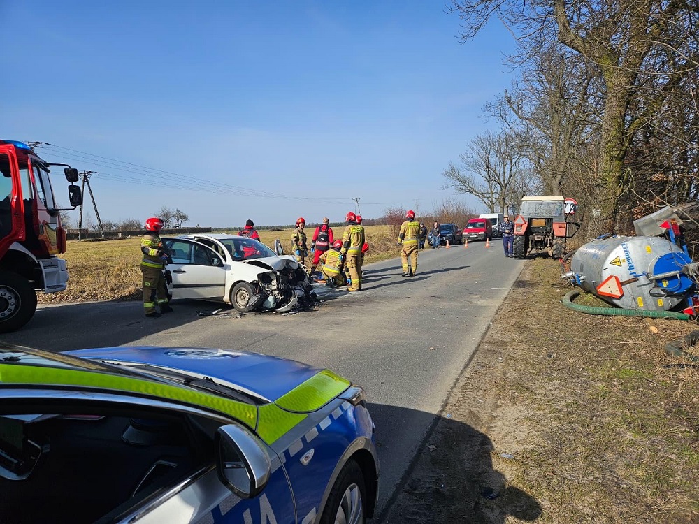 Jak wynika ze wstępnych ustaleń, 69-letni mieszkaniec gminy Mikstat, kierujący ciągnikiem rolniczym marki Zetor z przyczepą asenizacyjną, włączając się do ruchu z drogi podporządkowanej, nie ustąpił pierwszeństwa przejazdu 44-letniej mieszkance powiatu ostrzeszowskiego, która siedziała za kierownicą citroena.